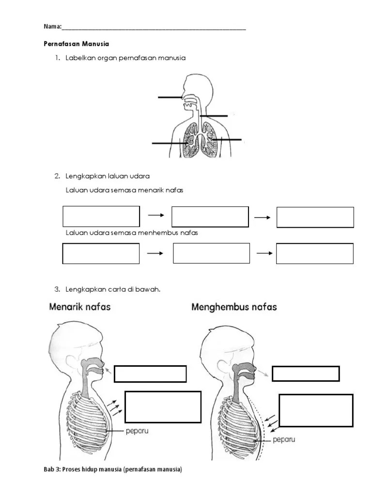 Pernafasan manusia sains tahun 4 lembaran kerja tahun 5 .